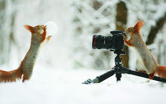 রাশিয়ান গুণী প্রকৃতিবিষয়ক আলোকচিত্রী ভাদিম ট্রুনভ। কাঠবিড়ালির সঙ্গে আগেও তাঁর ঘনিষ্ঠ সম্পর্ক ছিল। কিন্তু এবারই প্রথম, তাঁর তোলা ছবিতে এমনটা দেখা গেল, যেখানে কাঠবিড়ালিরা নিজেরা নিজেরা খেলা করছে, ছবিও তুলছে একে অন্যের! সম্প্রতি তিনি তাঁর তোলা কিছু কাঠবিড়ালির ছবি প্রকাশ করেন, যেখানে মনে হচ্ছে তারা তুষারমানব বানাচ্ছে, বাদাম দিয়ে ভলিবল খেলছে, এমন সব আরও কত-কী কাণ্ডকারখানা!